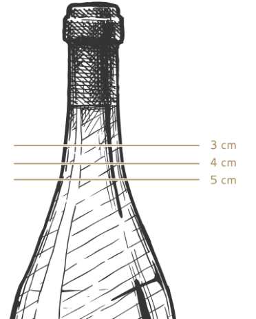 For Burgundies and wines in comparable bottles, such as wines from Germany and Alsace, the filling level is indicated in centimeters. Measured from the bottom of the cork to the level of the wine. Levels less than 2 centimeters are not described.